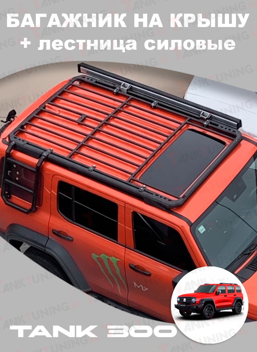 Силовой стальной багажник на крышу с вырезом под люк + лестница
