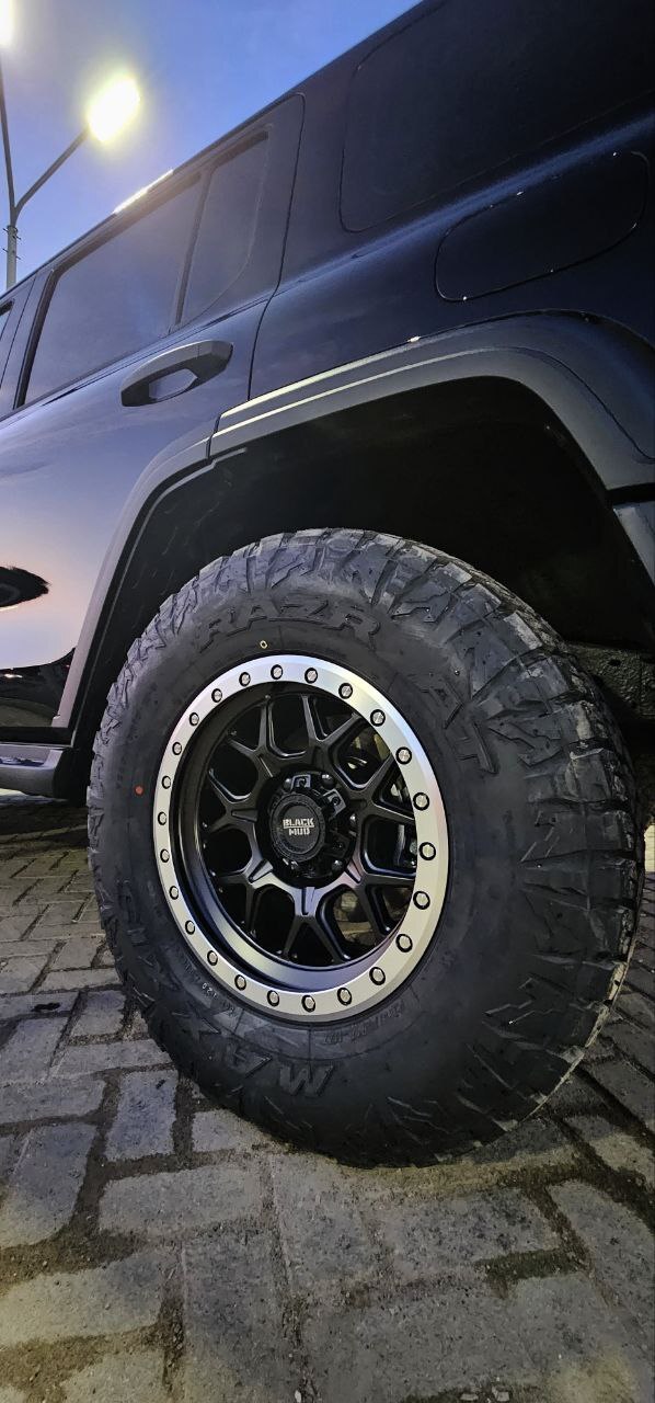 Стильные литые диски Black Mud в чёрном цвете c полированной имитацией бедлока. Выдержат высокие нагрузки на бездорожье, прочные и лёгкие.