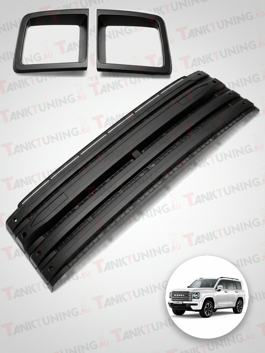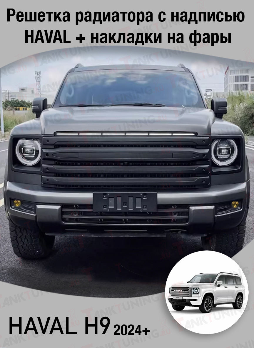 Haval H9 решетка радиатора Black Warrior без надписи HAVAL + накладки на фары