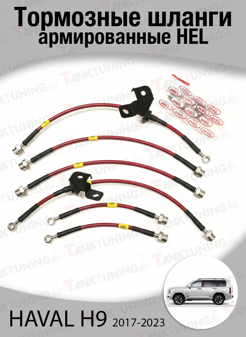 Комплект армированных тормозных шлангов для HAVAL H9 (2017-2023). Нержавеющая оплётка уменьшает раздувание шланга при торможении, снижает риск утечек и улучшает отклик педали. Температура −70…+260 °C. Сделано в России.