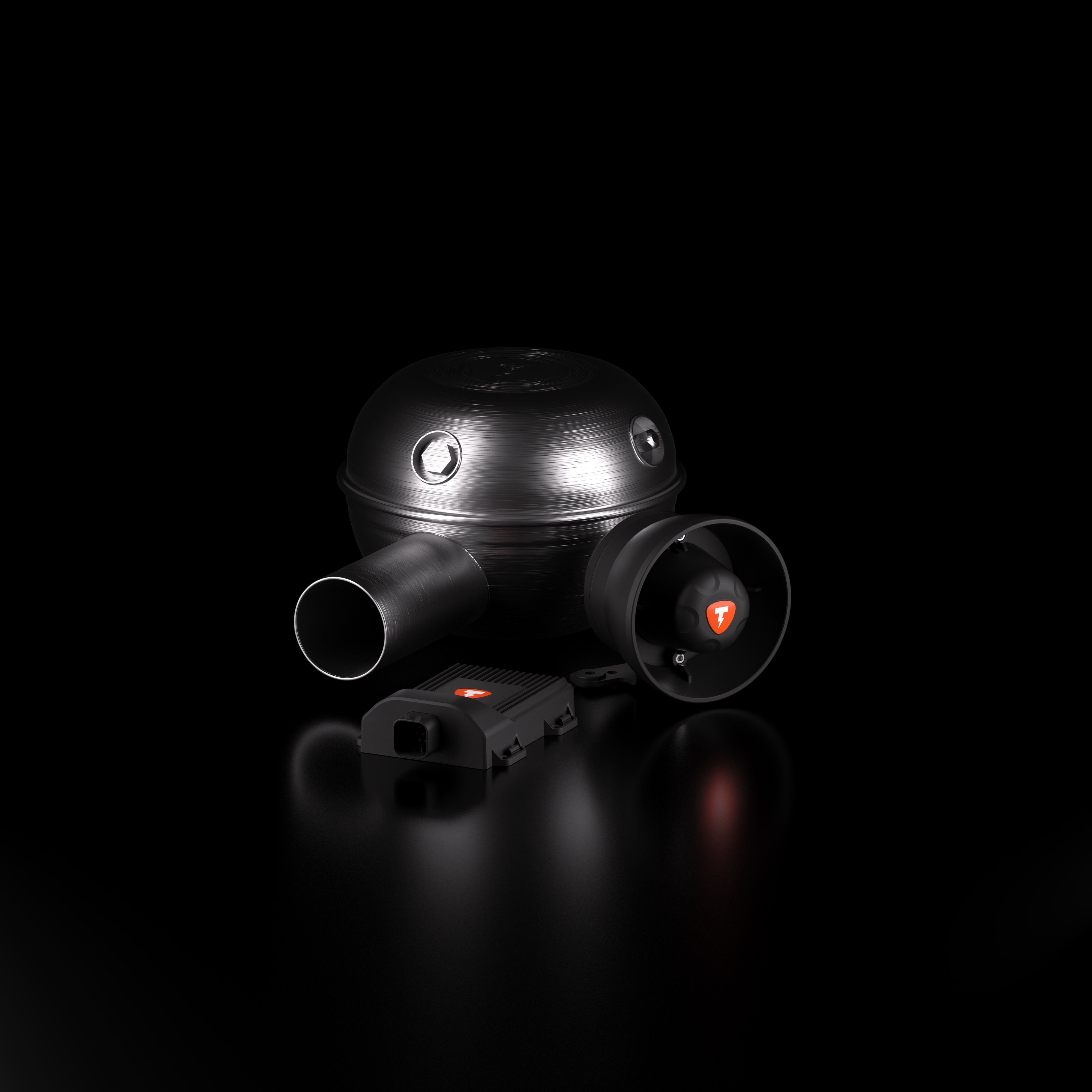 Продвинутый комплект, объединяющий мощную колонку THUNDER из титано-стального сплава, умный блок ECU и высокочастотный динамик ECHO.