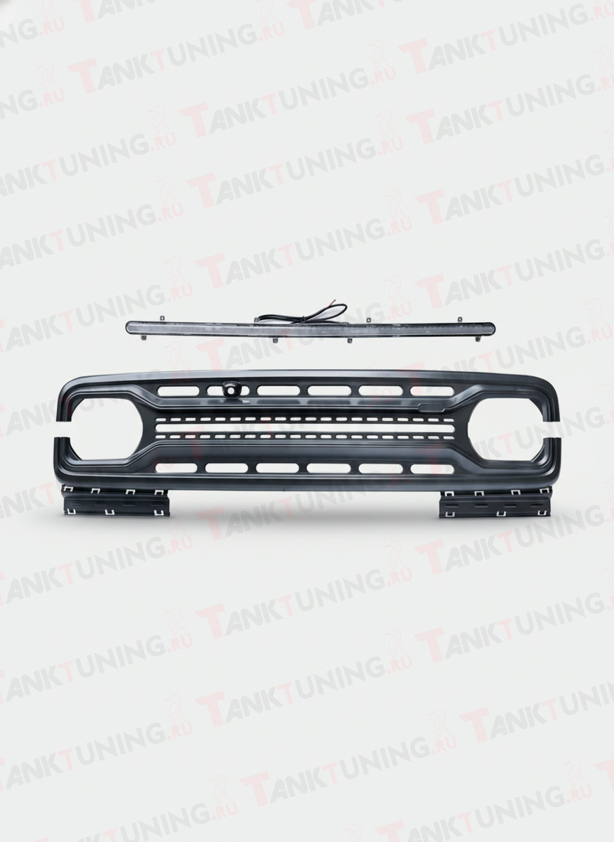 Тюнингованная решетка GEEA со встроенной полосой ДХО, белого цвета. Решетка идет в праймере под покраску
