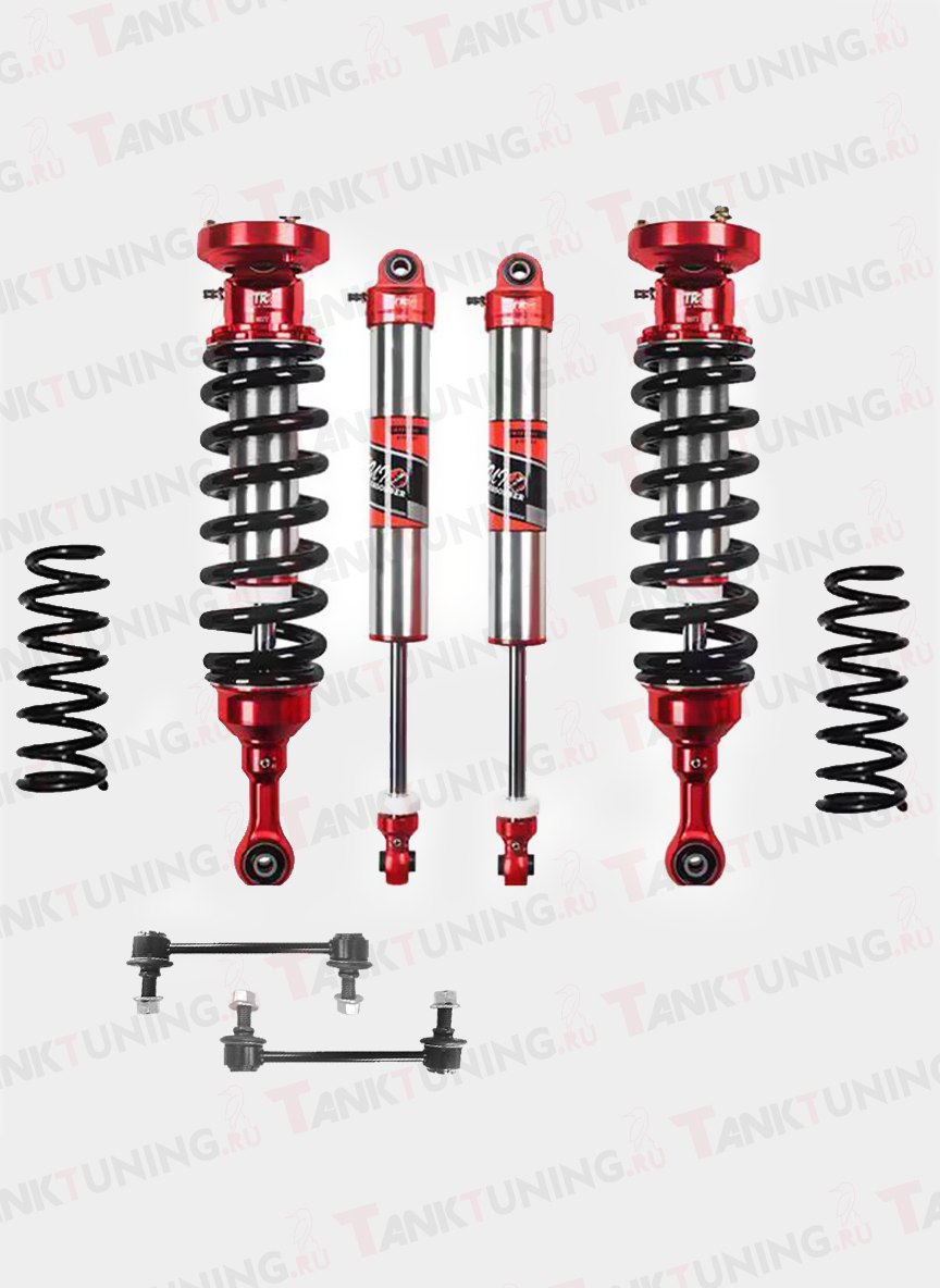 В набор входят 4 амортизатора, 4 пружины и 2 стойки стабилизатора.