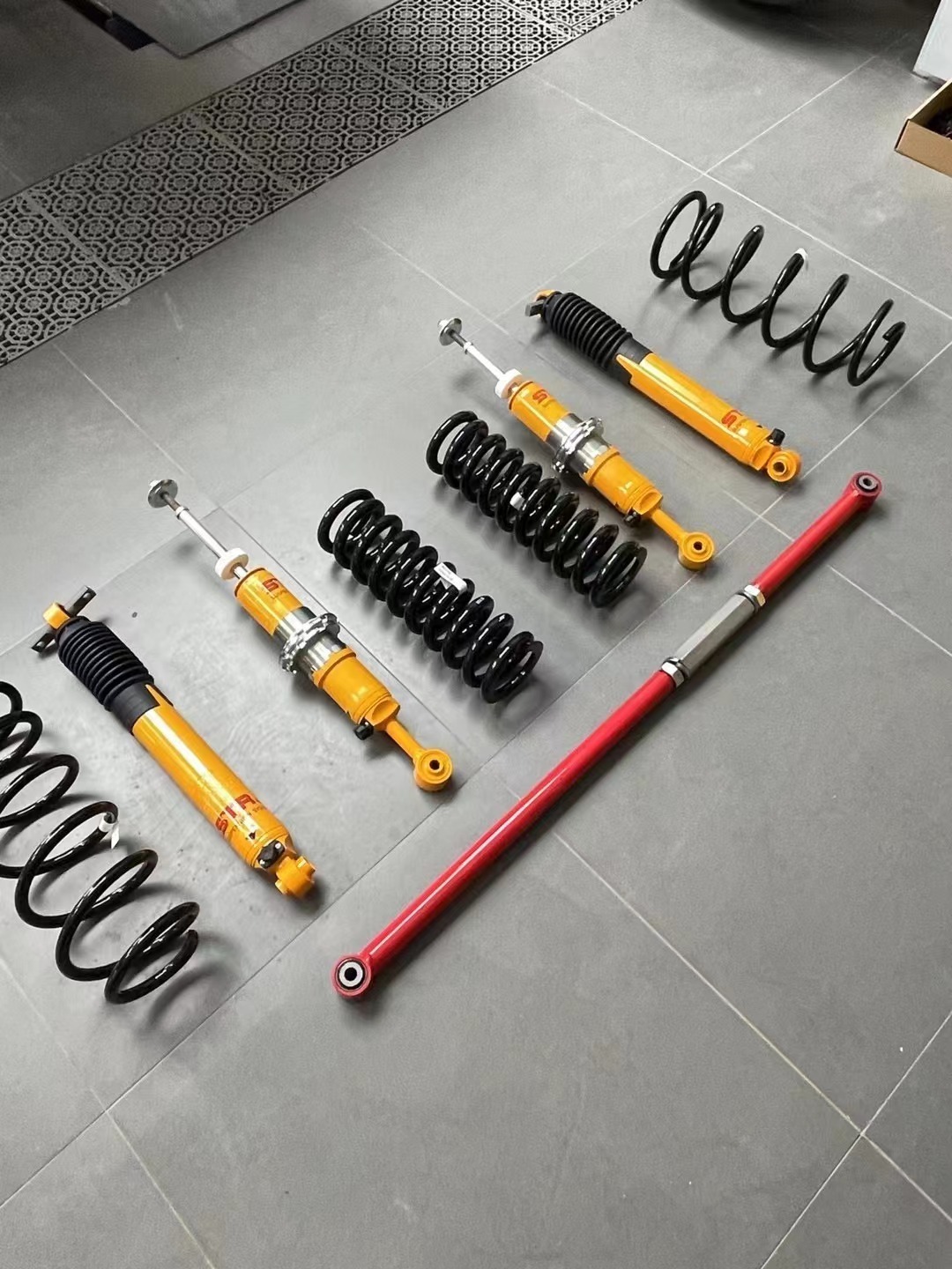 - Полный комплект: 4 амортизатора, 4 пружины и тяга Панара для удобной установки.