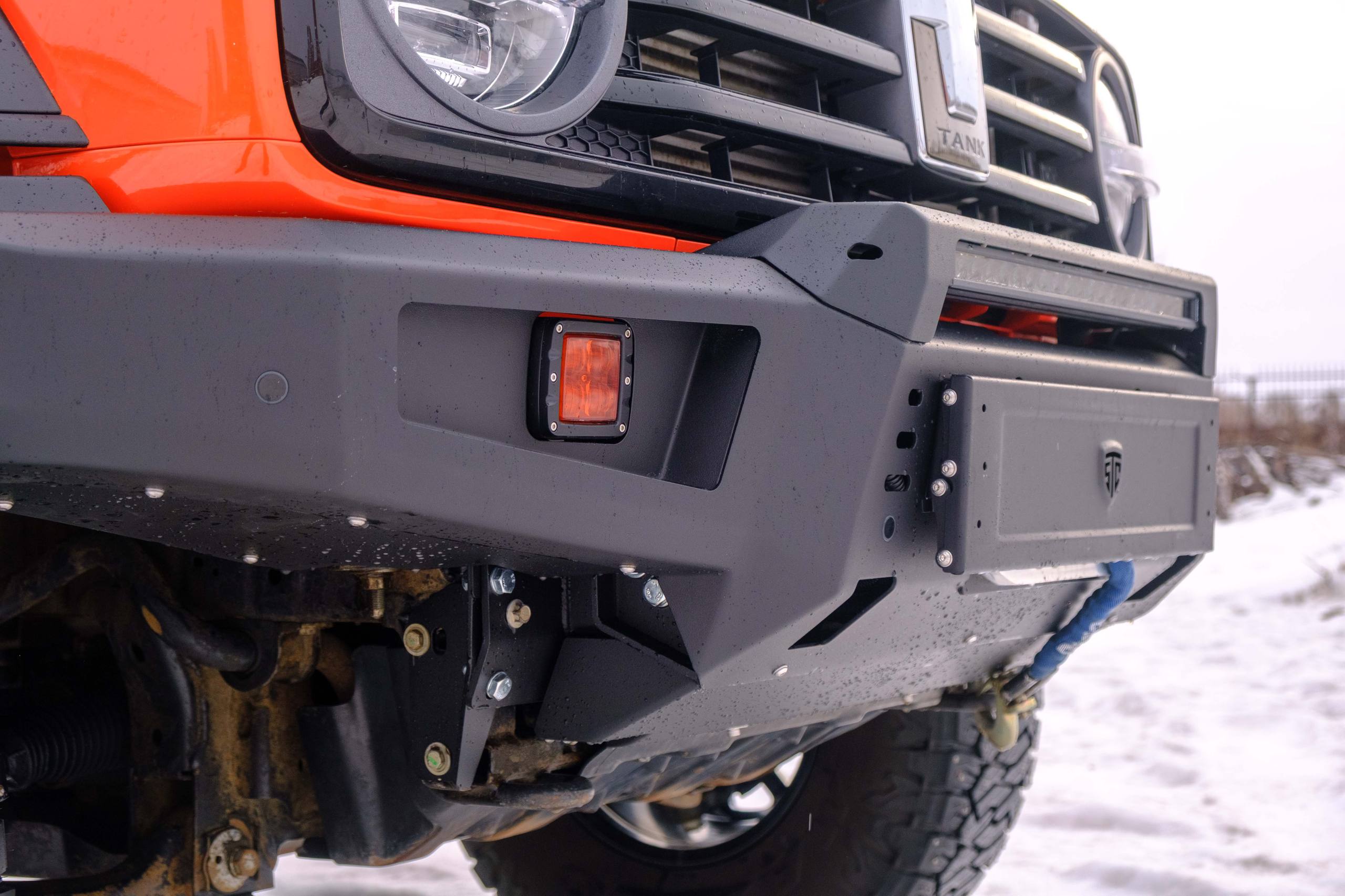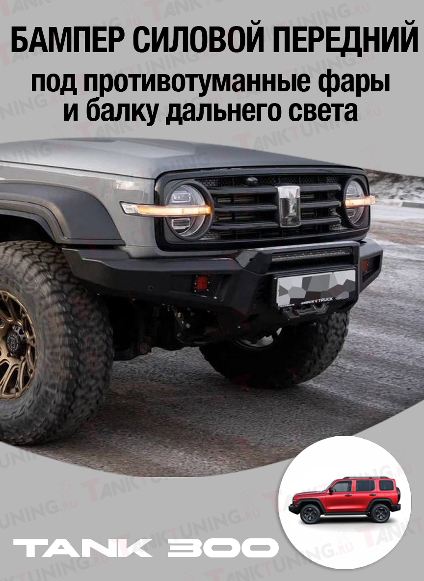 Силовой передний бампер STC для TANK 300 — под ПТФ и балку дальнего света
