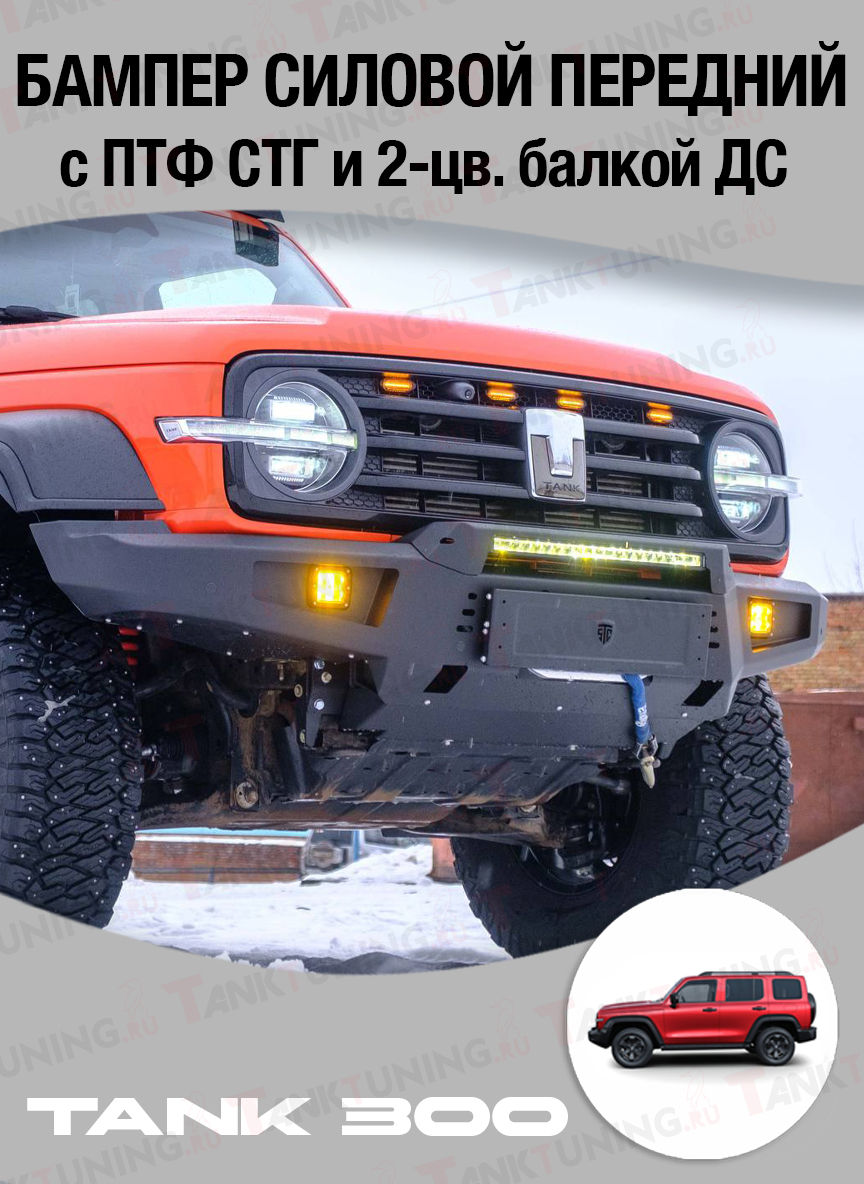 Силовой передний бампер STC для TANK 300 — под ПТФ и балку дальнего света