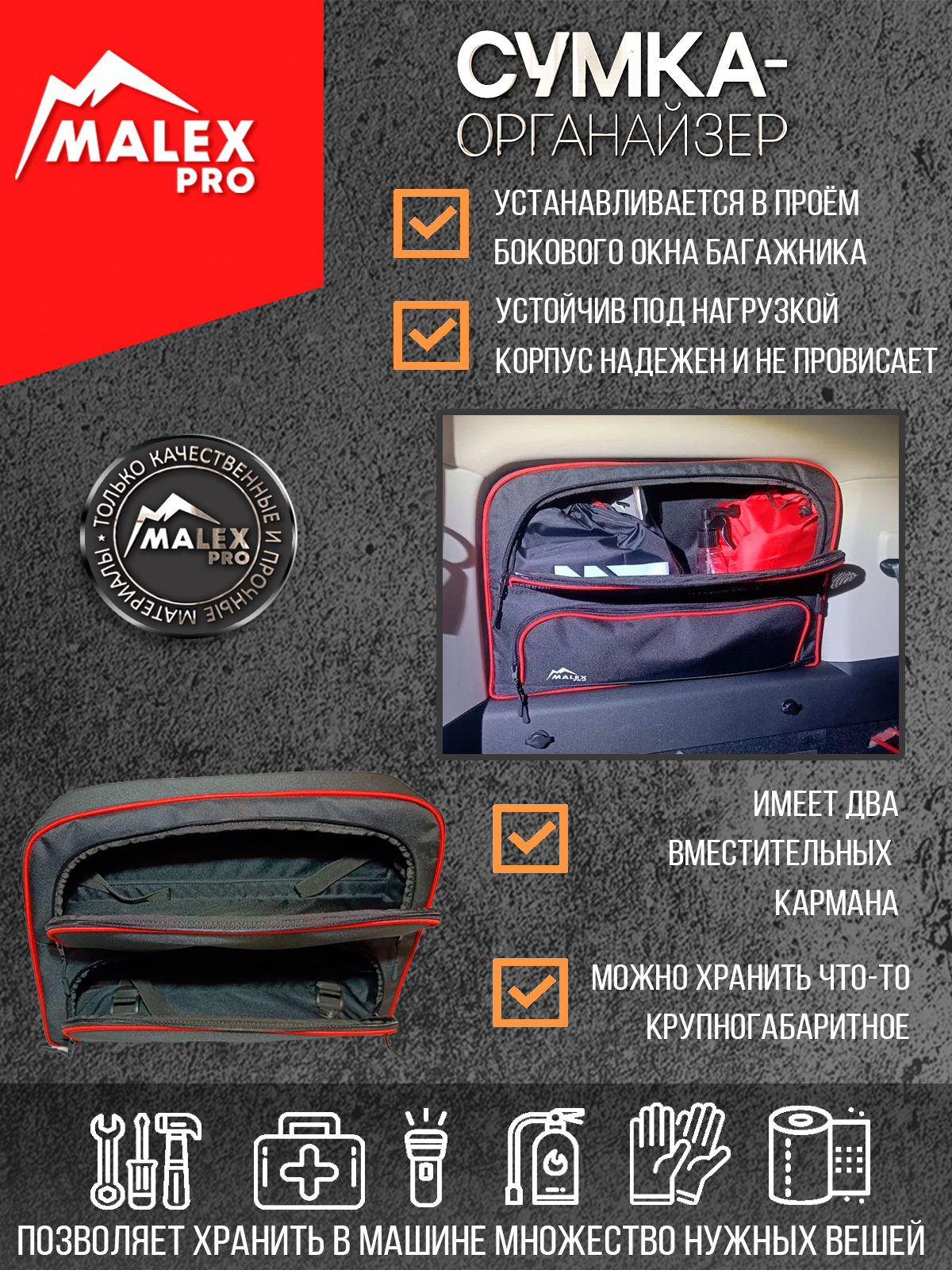 Tank300 Комплект сумок-органайзеров для окна багажника TankTuning/Malex pro (чёрный/красный) – купить за 15 110 ₽ | TankTuning - самый большой магазин тюнинга Tank 300