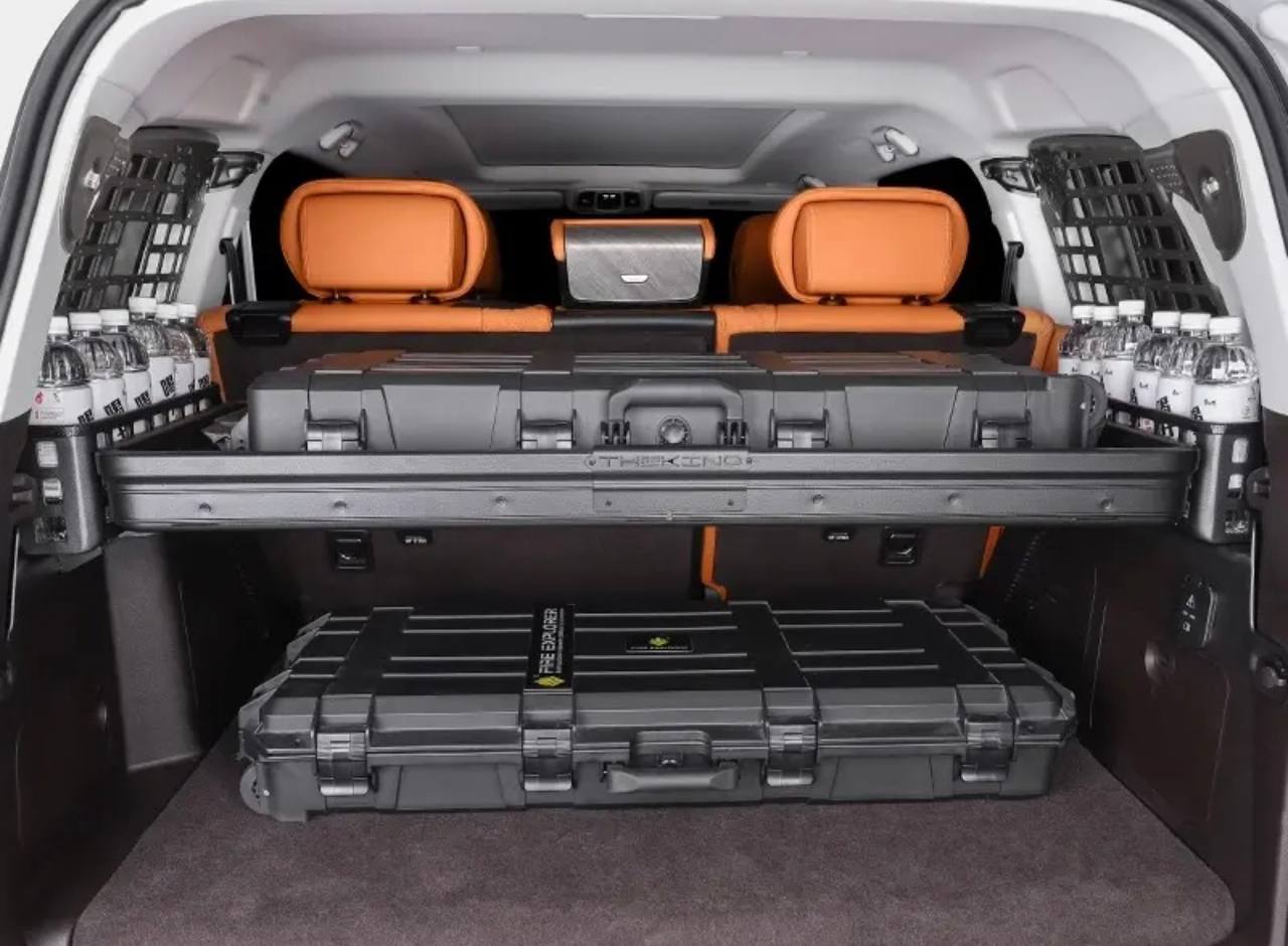 багажная система, багажная полка, грузовая перегородка, полка-перегородка, полка в багажник автомобиля, органайзер багажника, двухуровневый багажник, полка-трансформер, алюминиевая полка для багажника, лёгкий алюминий, коррозионностойкая конструкция, нагрузка до 100 кг, установка в штатные места, без сверления кузова, комплект крепежа, боковые панели MOLLE, молле-решётка, точки крепления ремней, крепление багажа стропами, защита спинок сидений, разделитель багажного отделения, грузовой лоток, решётчатая полка, система хранения в багажнике, модульная багажная система, организация пространства багажника, безопасная перевозка вещей, укладка багажа, аксессуары для багажника, экспедиционный тюнинг, автопутешествия, кемпинг, охота и рыбалка, off-road аксессуары, для внедорожника, для кроссовера, для универсала, для минивэна, совместимо с складными сиденьями, полка белого цвета, перегородка для перевозки собак, крепление в проушины, лоток для сумок и чемоданов, автомобильный туризм, грузовой отсек, багажное отделение авто, багажная решётка, trunk organizer, trunk divider, cargo shelf SUV, aluminum cargo barrier, 100kg load capacity, white cargo shelf, Theking, багажная система с полкой в багажнике, полка-перегородка в вертикальном положении, двухуровневый багажник с грузом, боковой органайзер с бутылками, комплект деталей багажной системы, багажная система с боковыми панелями, раскладной полкой и органайзерами